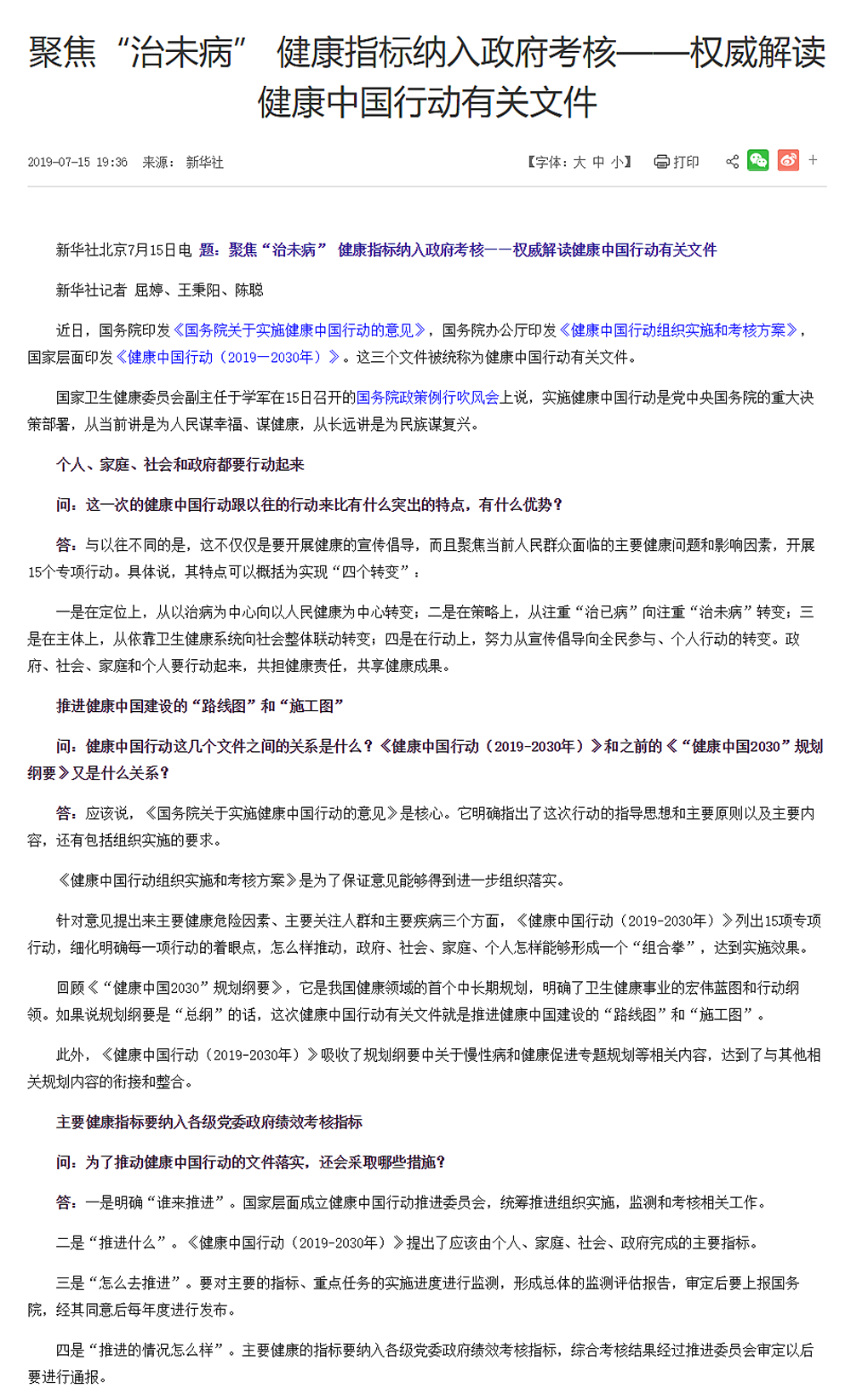 国务院办公厅关于印发健康中国行动 组织实施和考核方案的通知