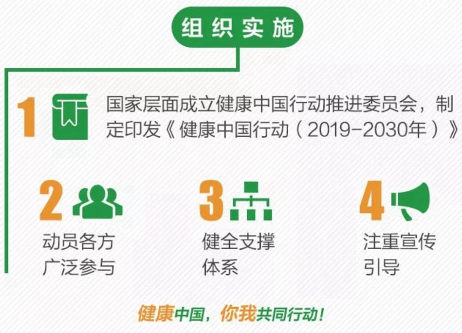 (一)成立健康中国行动推进委员会。依托全国爱国卫生运动委员会,国家层面成立健康中国行动推进委员会(以下简称推进委员会),制定印发《健康中国行动(2019—2030年)》(以下简称《健康中国行动》),统筹推进组织实施、监测和考核相关工作。