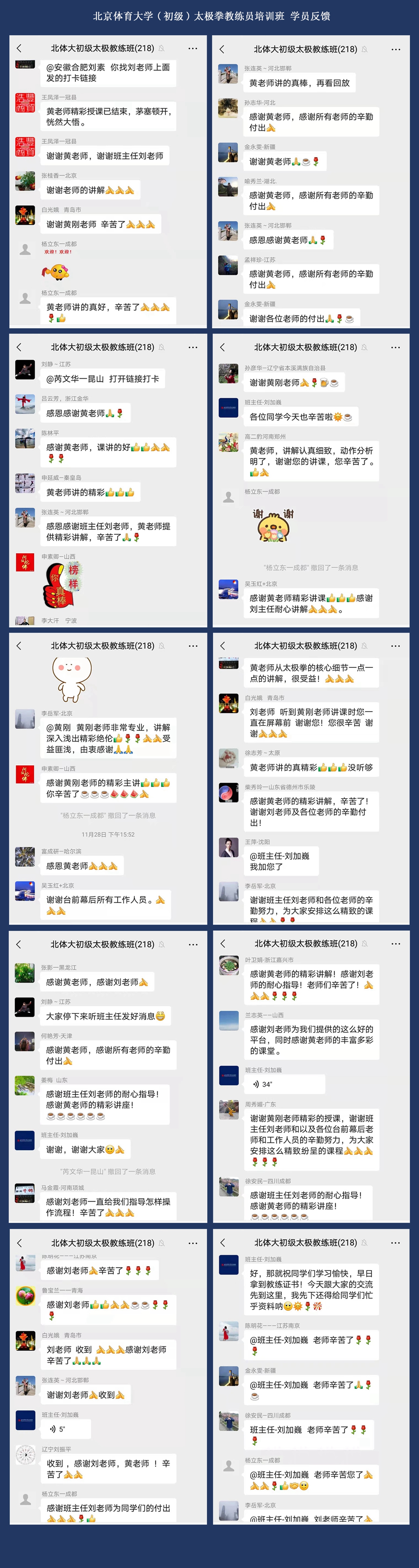 11月北京体育大学(初级)太极拳教练员线上培训圆满结束,来自全国各地的210名太极拳教练员、体育/武术教师、武术段位者、社会体育指导员、太极拳爱好者参加了此次培训及考核。
